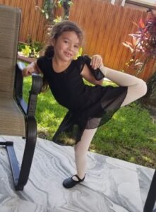 La mamá de una de las niñas de nuestra escuela de danza «D&V art center», nos envió unas fotos de su hija quien estaba emocionada dejando que su fantasía la llevara de la mano mientras realizaba ejercicios de Ballet en su casa. Es difícil saber con exactitud lo que sucede, a cada momento, en la imaginación de un niño o una niña. De lo que si podemos darnos cuenta es que esta niña, que apenas comenzaba a tomar clases de danza, ya se veía, a sí misma, como una bailarina profesional ejecutando los más complicados pasos de Ballet.